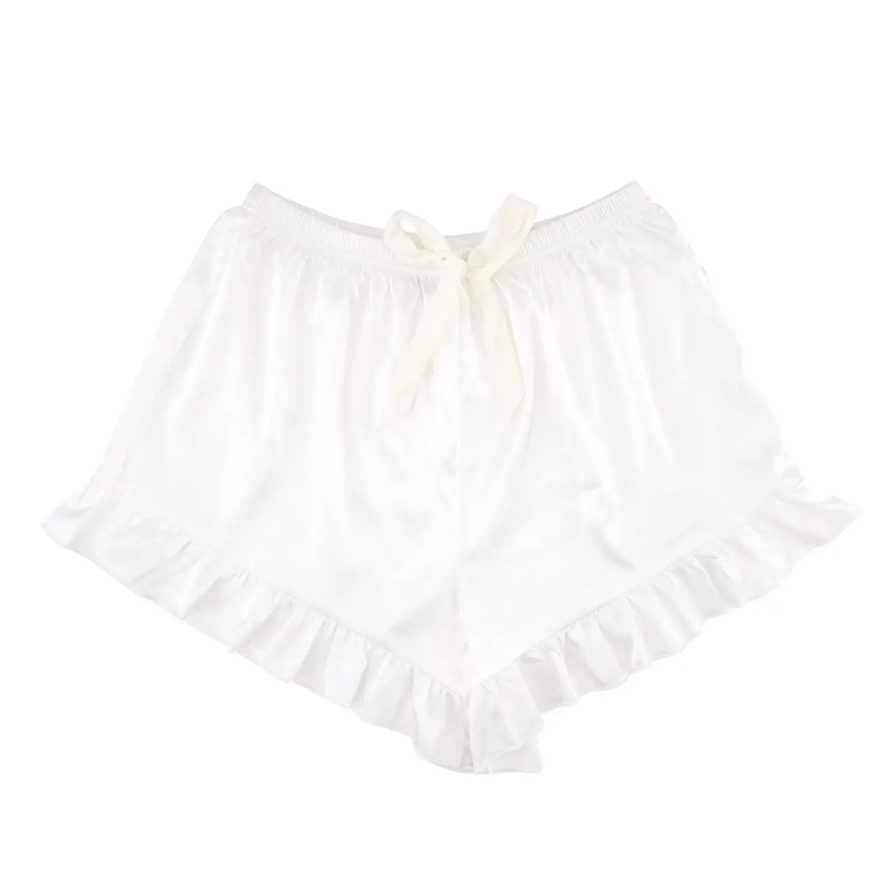 Women’s Satin Pajama Set in white or blue – Silky Sleepwear with Velvet Waistband Ties